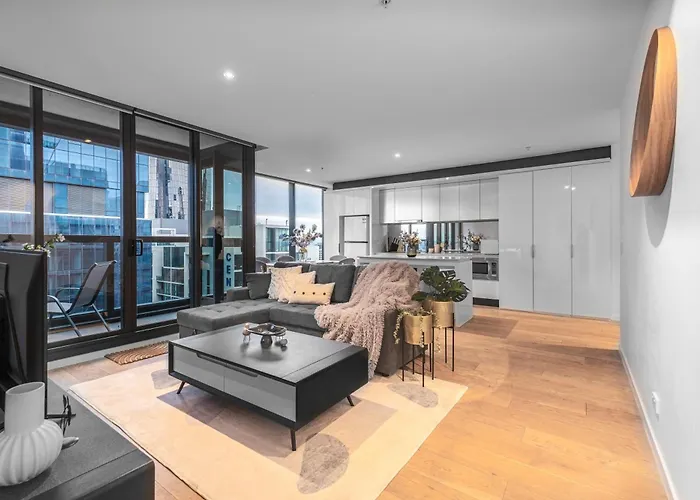 Located in the centre of Melbourne, the 2-room Manhattan Stadium View 3Br2Ba Free Parking Melbourne apartment offers fast access to Eureka Skydeck Tower around 20 minutes' walk away.